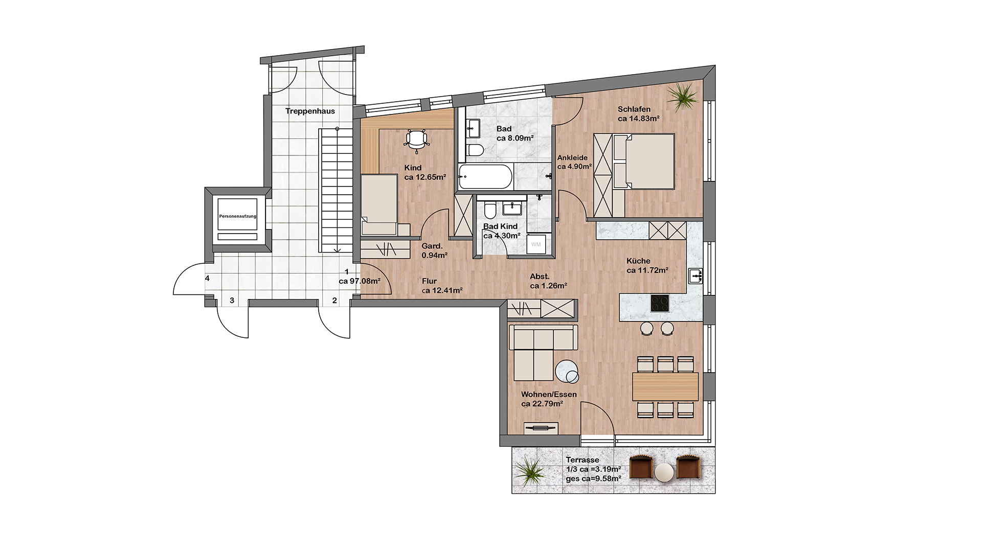 Großzügige und gut durchdachte Grundrisse bieten schöne Entfaltungsmöglichkeiten für die Bewohner.